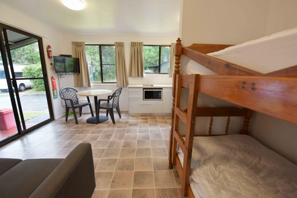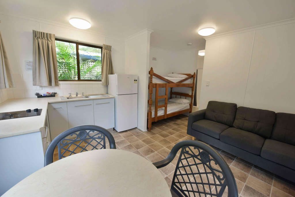 Spacious, comfortable, and perfect for a beachside break, our Lounge Cabin sleeps up to four guests and includes everything you need for a relaxed stay. With a cosy lounge area, full kitchen, private bathroom and both indoor and outdoor dining spaces — it’s ideal for families or couples looking for a little extra room to stretch out. After a day in the sun, fire up the Webber BBQ and enjoy a laid-back meal under the trees.