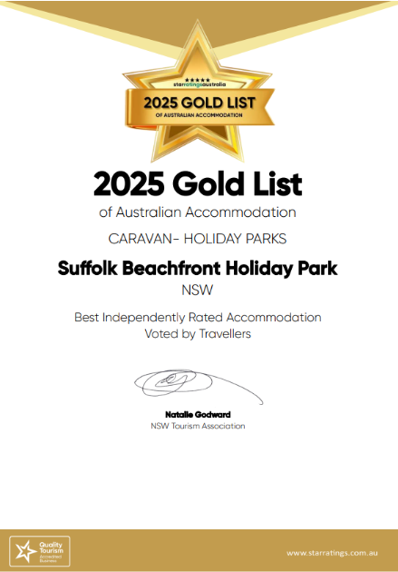 Suffolk Beachfront Holiday Park has been named Best Independently Rated Caravan-Holiday Park in New South Wales, earning them pride of place on the 2025 Gold List of Australian Accommodation.